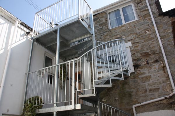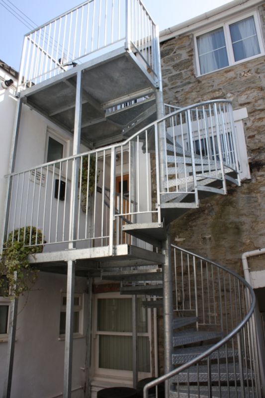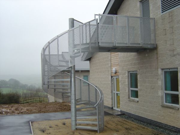 SPIRAL FIRE SESCAPE WITH PERFORATED BALUSTRADE